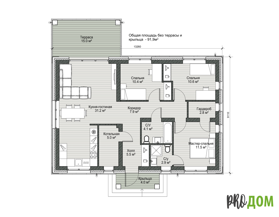 • Терраса открытая палуба либо под кровлю